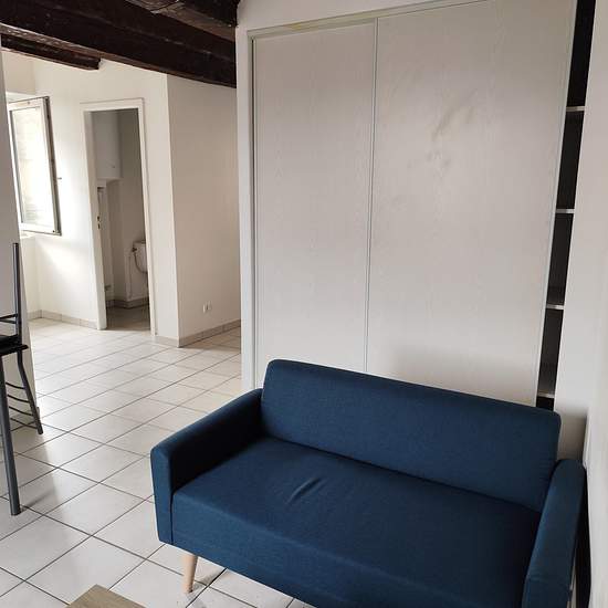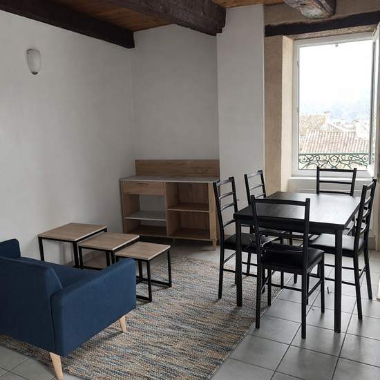 T1 Bis au dernier étage du centre ville de Cahors avec vue sur les toits dans un immeuble ancien. Il est composé d'une entrée, d'un séjour avec placard, d'une cuisine équipée et aménagée, d'un espace nuit, d'une salle d'eau avec wc et cave. Loué avec prêt de meubles. Possibilité de souscrire l'assurance Multirisque Habitation par le biais de notre partenaire GALIAN SMABTP pour un tarif mensuel de 8.52EUR (prix indicatif correspondant à la garantie la plus basse, frais de souscription exclus).