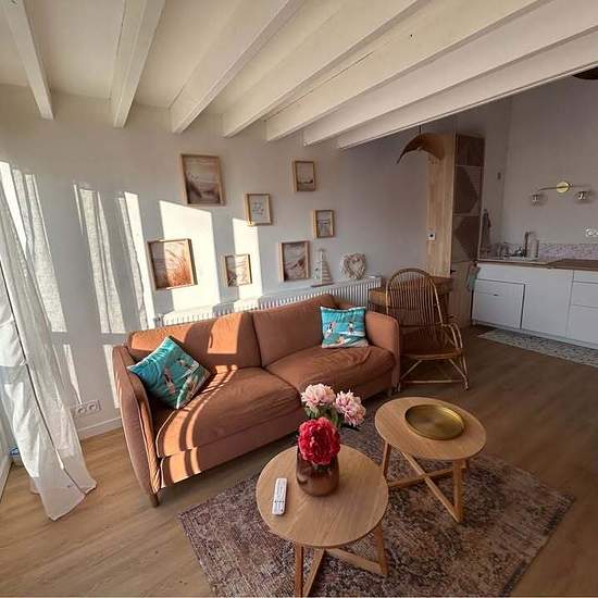 Situation idéale ! Face à la mer, dans une petite copropriété calme, avec arrêt de bus juste devant l’immeuble. Appartement meublé en duplex, entièrement refait à neuf, disponible à la location uniquement jusque mai (bail de moyenne durée, idéal pour un étudiant, un stagiaire ou un contrat saisonnier). Composition : • Rez-de-chaussée : • Cuisine équipée : plaque à induction, four micro-ondes, frigo, vaisselle et électroménager complet • Salle de bain avec douche • Pièce de vie : canapé, table + 2 chaises, meuble TV et écran plat • À l’étage ...