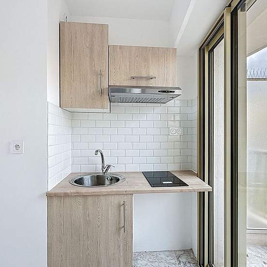 STUDIO VIDE - CANNES. CANNES - Proche Square Mistral, Dans résidence à proximité des commerces et transports, studio rénové se composant d'une entrée avec placard, d'un séjour/cuisine ouvrant sur un balcon et d'une salle d'eau/WC. Climatisation (fonction refroidissement uniquement), Eau chaude et Eau froide collectives. Chauffage : radiateurs électriques. DPE D