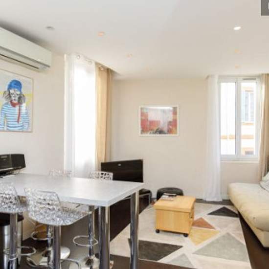 Elégant T2 situé au 1er étage d'un petit immeuble sécurisé, à 150m de la plage, état neuf , équipé de la climatisation, interphone, digicode et la fibre. La chambre de grande taille offre un couchage avec 2 lits ou un grand lit, un dressing, une commode, deux chevets et une télévision décorée avec goût. Le salon avec canapé très confortable peut accueillir un couple ponctuellement, deux tables basses et pouf complètent cet ensemble, un grand écran téléviseur gamer dernier génération pour vos soirées est neuf également La cuisine est ouverte ...