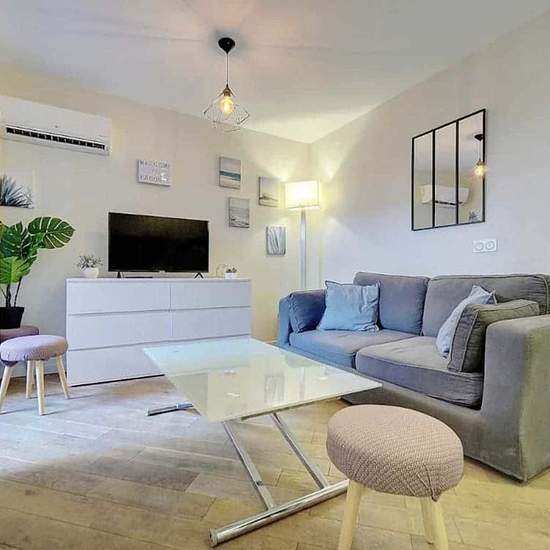 Le logement Ce deux pièces de 28 m² magnifiquement aménagé se trouve en plein cœur de la ville, dans le quartier historique du Suquet, au cœur de la banane de Cannes. Voici une description plus détaillée des équipements et des avantages de cet hébergement : Capacité d'accueil : L'appartement peut accueillir jusqu'à quatre personnes, ce qui en fait un choix idéal pour les couples, les amis ou les petites familles. Avec un lit double dans une chambre séparée et un canapé-lit dans le salon, il offre suffisamment d'espace pour tout le monde. Sal...