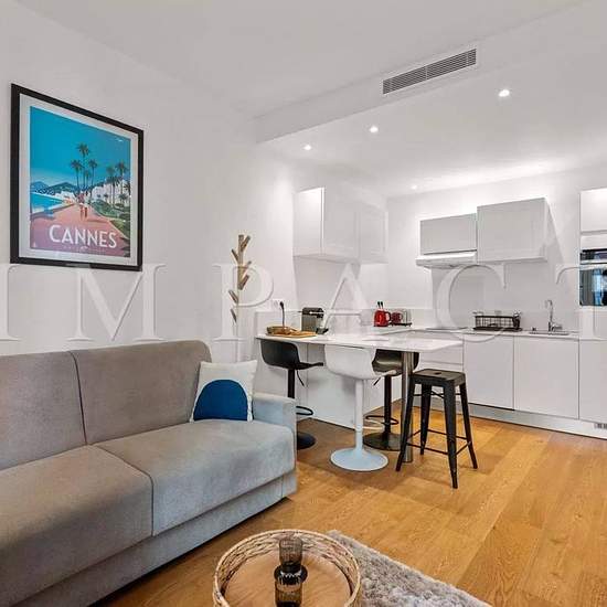 Exposé au nord, il offre un espace confortable et fonctionnel comprenant un séjour lumineux avec canapé et télévision, une cuisine ouverte entièrement équipée, et une chambre double avec lit 160x200, placard et salle de bain attenante avec toilettes. Cet appartement est idéal pour un couple, un professionnel ou une personne voyageant seule souhaitant profiter pleinement du centre de Cannes et de toutes ses activités. L’accès se fait par code sécurisé. Autres équipements : WIFI, Climatisation Equipé pour 2 personnes