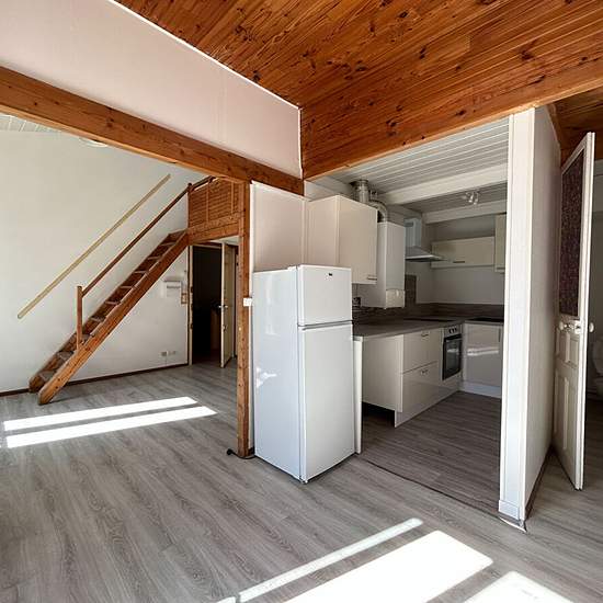 Appartement Carcassonne T1 en Duplex 39 m2 Quartier Iéna, appartement comprenant, une pièce de vie, un coin repas avec cuisine équipée, un toilette, en mezzanine se trouve l'espace couchage avec une salle d'eau. Chauffage central gaz. Environnement calme.