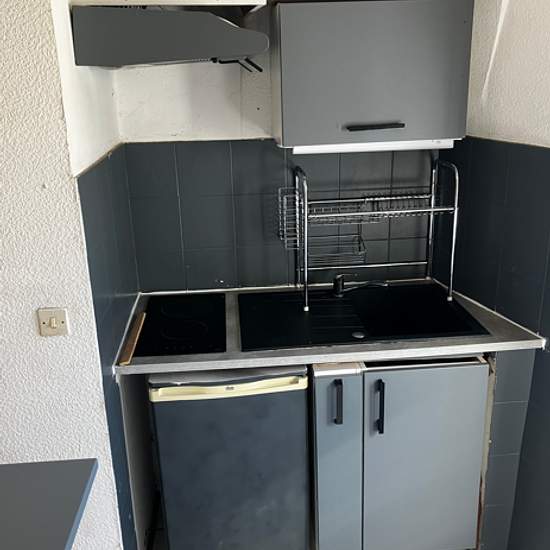 Centre ville castelnaudary studio de 28 m² sis au 3eme etage immeuble securise. Kitchenette equipee plaques electriques / hotte aspirante / frigo top. Chauffage electrique. Agence un tour de clef - 6 rue soumet - 11400 castelnaudary - - EMAIL