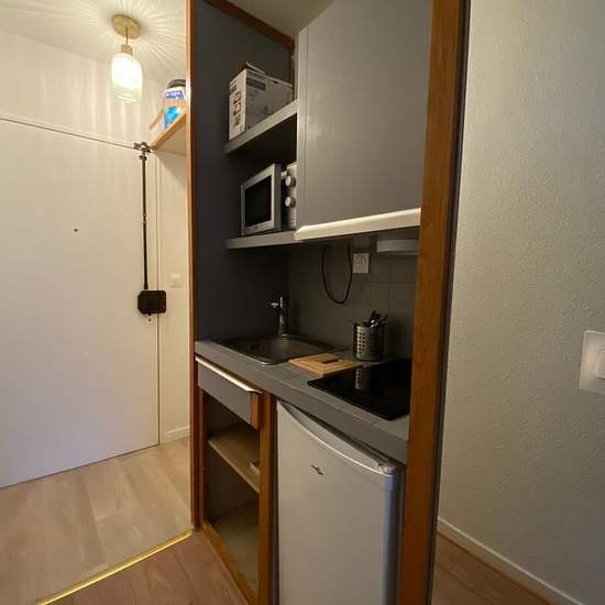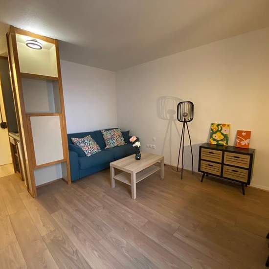 Contact par email. Cergy proche gare rer a et gare routière dans une copropriété entretenue offrant de belles prestations "les estudines"(laverie, gardien, salle de sport) charmant appartement studio meublé en très bon état. Il se compose : d'une entrée, séjour avec espace cuisine, ainsi que d'une salle d'eau avec wc.