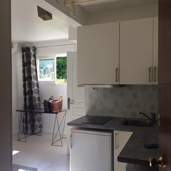 Loue studio meublé de 17 m² totalement équipé et refait à neuf avec matériaux haut de gamme. Parfaitement adapté à un étudiant, jeune travailleur ou sportif. Résidence sécurisée en pierres de taille, environnement calme, rez-de-chaussée. Parking et Gardien ACCES : à proximité de Sciences Po, Saint Germain en Laye, Lycée international, Lycée agricole, et Parc du PSG et du centre commercial Chambourcy et de Poissy. CABINET MEDICAL ? TRANSPORTS EN COMMUN A QUELQUES PAS Accès direct autoroutes A13 et A14 Cuisine : totalement équipée avec machine...