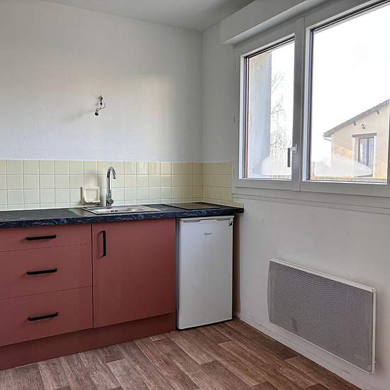 Château-Thierry, appartement de type Studio en résidence, comprenant : Une entrée avec placards de rangement, un couloir qui dessert une salle d'eau, un wc , une cuisine aménagée avec plaque et réfrigérateur, une pièce de vie avec un balcon. Une cave et place de stationnement. Loyer 400 euros Charges 50 euros Honoraires de location 300 euros