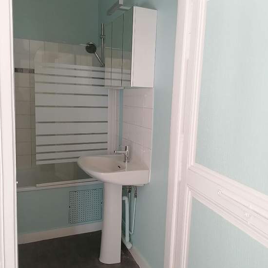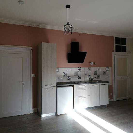 Au 1er étage côté cour, un appartement au calme de 31m² qui se compose d'une pièce principale avec coin-cuisine équipé (hotte-plaque vitrocéramique-réfrigérateur), salle de bains avec w.c. Disponible de 1 avril 2026 345 euros + Provision de charges 40 euros (eau, ordures ménagères, entretien des parties communes)