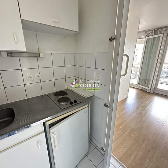T1 très plaisant à vivre et fonctionnel situé dans un immeuble aux belles prestations et à proximité des grands axes, face au square des Paulines. Séjour avec coin chambre séparé en parquet, kitchenette équipée, balcon, garage, 420€HC.