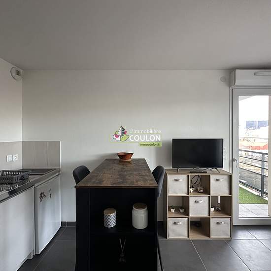 Très belle vue degagee sur puy-de-dôme et cathédrale pour ce t1 récent comprenant un coin kicthenette équipée et une belle terrasse, 355€hc.
