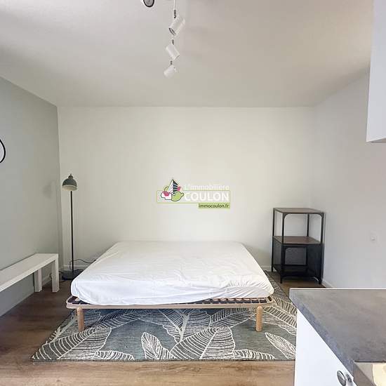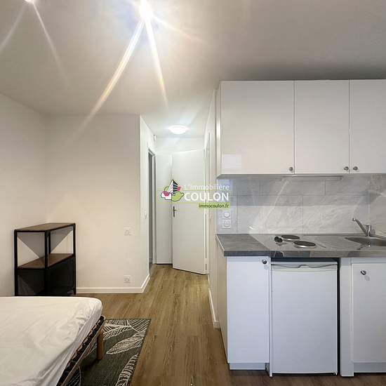 A SAISIR : Studio MEUBLE REFAIT à NEUF avec isolation des murs et plafond, tout en parquet situé à proximité de toutes commodités (tram, commerces) comprenant une kitchenette équipée, cave et parking, 380?HC.