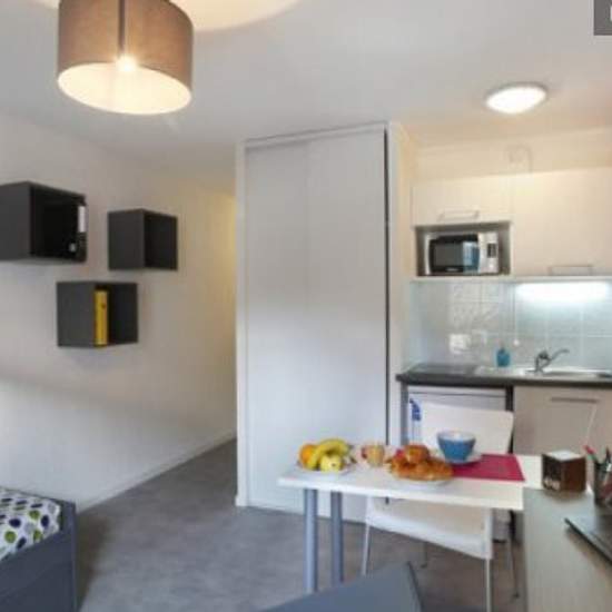 Résidence neuve ouverte en août 2016 située à 2/3 minutes à pied de la célèbre place de Jaude, véritable coeur de Clermont-Ferrand avec ces restaurants, centres commerciaux, supermarchés... La gare SNCF se trouve à 10 minutes en bus de la résidence (bus disponible toutes les 10 minutes) Nos logements sont composés d'un espace de vie avec lit gigogne (2 couchages), un bureau, une penderie, un coin kitchenette avec micro ondes, réfrigérateur et plaques vitrocéramiques et d'une salle de bain. Nous fournissons une télévision et un kit vaisselle ...