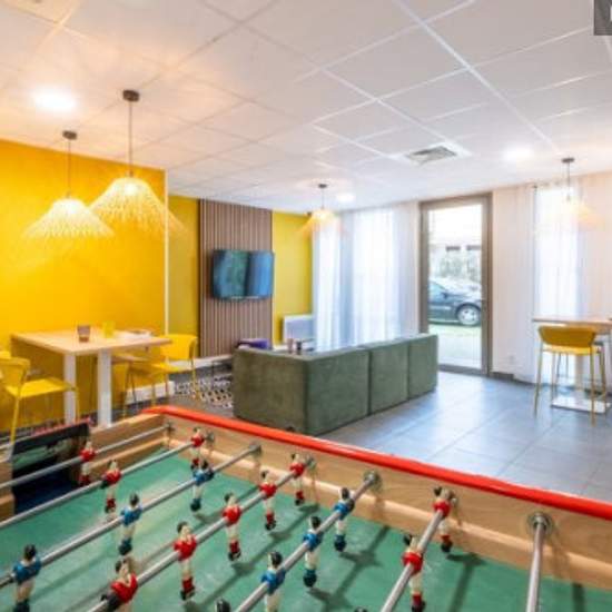 Résidence neuve ouverte en août 2016 située à 2/3 minutes à pied de la célèbre place de Jaude, véritable coeur de Clermont-Ferrand avec ces restaurants, centres commerciaux, supermarchés... La gare SNCF se trouve à 10 minutes en bus de la résidence (bus disponible toutes les 10 minutes) Nos logements sont composés d'un espace de vie avec lit gigogne (2 couchages), un bureau, une penderie, un coin kitchenette avec micro ondes, réfrigérateur et plaques vitrocéramiques et d'une salle de bain. Nous fournissons une télévision et un kit vaisselle ...