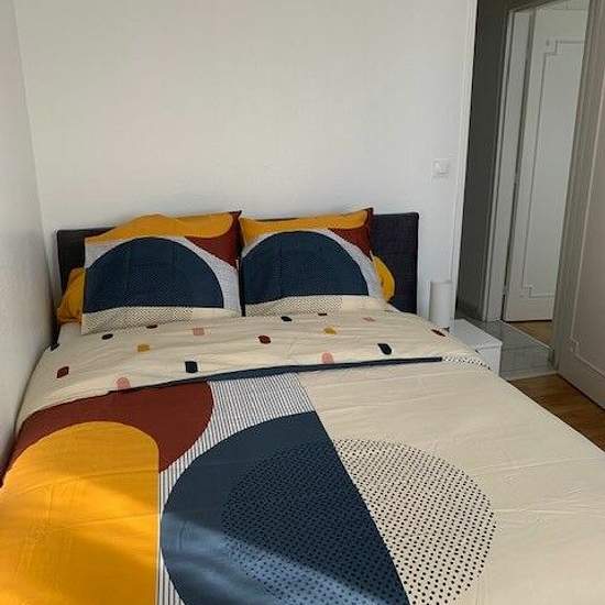 MyRoom vous propose cette belle chambre meublée en colocation, idéal pour étudiants ou jeunes actifs. Dans un bel appartement, refait à neuf récemment, vous retrouverez cette belle chambre entièrement meublée (lit double, bureau, penderie. ). L'appartement est composé de 3 chambres avec 1 salon (coin télé, canapé, chaises et table à manger) donnant sur un balcon. La cuisine séparée est équipée de plaques, d'un four, d'un grand frigo américain, d'une machine à laver et d'un sèche-linge. Enfin, 1 grande salle de bain avec douche italienne. Idé...