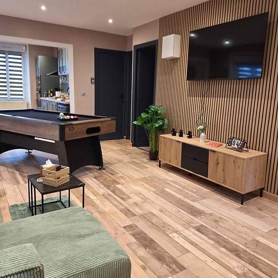 A Louer la Love Vida Appartement tout équiper avec billard , balnéo 2 personnes , table de massage A Condés en Normandie au coeur de la Suisse Normande à 8mn de Clecy et ses multiples activités. A 1 km de centre de Condés en Normandie et de tout commerces et à 5mn de Flers Appartement idéales pour passer un agréable moment en amoureux ou en famille 4 personnes maxi. Pas sérieux s'abstenir. Possibilité de louer sans la pièce Balnéo prix : 120e la nuit Avec balnéo et table de massage : 150e la nuit