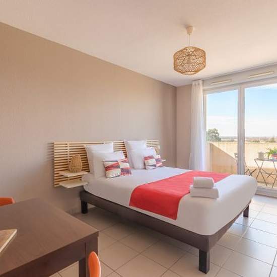 The Résidence is 15 km from Toulouse city centre and a 10-minute drive from Toulouse-Blagnac airport. It features an outdoor swimming pool open from May to September and a games room where you can play billiards. The flats and studios are air-conditioned and feature unlimited free Wi-Fi internet access. They all include a flat-screen TV and a fully equipped kitchenette. kitchenette. Served every morning and at an additional cost, the buffet breakfast includes a variety of breads, pastries, hot and cold drinks, scrambled eggs and dairy produc...
