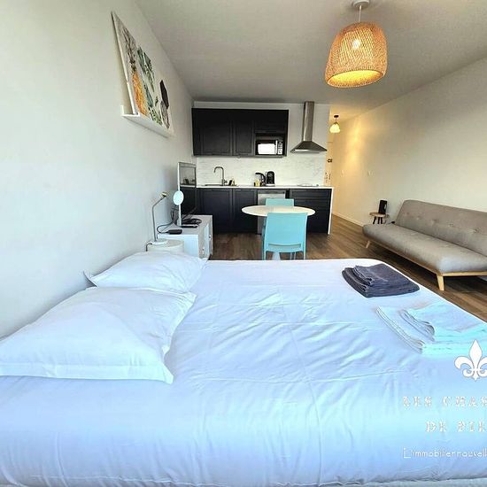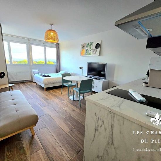 Studio de 30 m² au dernier étage avec ascenseur,entièrement rénové et meublé en 2021, composé d'une pièce de vie lumineuse de 21 m² avec grande surface vitrée, cuisine entièrement équipée, salle d'eau avec douche tropicale et WC séparé. Tout l'électroménager est présent lave vaisselle, lave vaisselle, micro onde, frigo etc. VRAI lit 2 places 140 et canapé. Le loyer comprend 110 € de charges dont eau chaude et froide, chauffage et électricité et internet (fibre). PARKING COLLECTIF SECURISE avec vidéosurveillance. A proximité des lycées, des c...