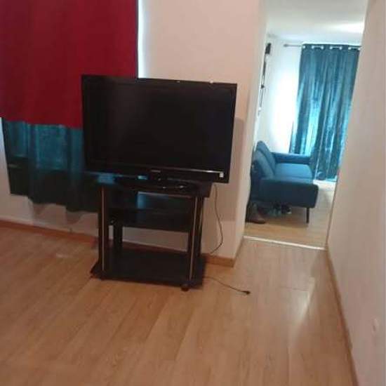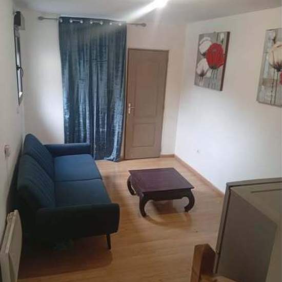 Appartement meublé, une chambre, coin, cuisine, télévision, frigo, lit etc…