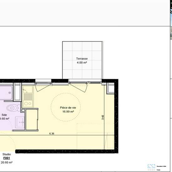 À dijon dans la résidence étudiante neuve (2025) parc avenue, t1 n° f001 de 20,60 m². Situé au rez-de-chaussée du bâtiment f. Il comprend : une pièce de vie de 16.99 m² donnant sur une terrasse de 4.00 m² et une salle de bain avec wc de 3.60 m². Eau chaude et chauffage collectif au gaz urbain. À 50m au sud de l'arrêt du tram 'junot) et à moins de 15min à pied du centre ville et de l'école bsb -proches de tous commerces disponible au 11.07. 2025, non visitable avant le 15.06. 2025. Le dpe sera disponible après la livraison du logement.