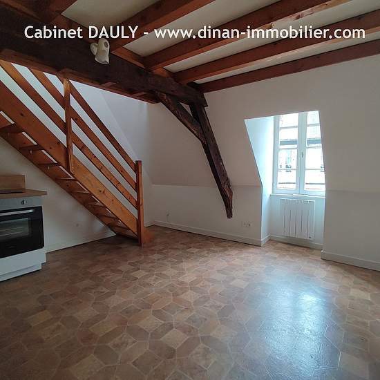DINAN - Centre Historique - Appartement T1 Duplex de 19m2 comprenant une pièce de vie avec coin cuisine aménagé et équipé (plaque, et four), une salle d'eau avec WC, et une mezzanine. Chauffage électrique individuel. Eau et électricité individuelle. DPE : E. Libre de suite. Dépôt de garantie : 425 EUR. REF : MP425. Loyer : 450 EUR par mois charges comprises dont 25 EUR de provision sur charges - régularisation annuelle. Honoraires charge locataire : 216.37 EUR TTC dont 59.01 EUR TTC pour état des lieux.