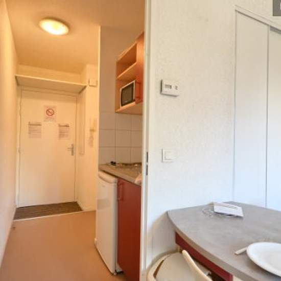Située en plein centre de Douai, cette résidence vous offre tous les agréments de la vie quotidienne avec de nombreux commerces à proximité. Proche de la faculté de Droit et du centre hospitalier. L'appartement se situe au 2ème étage d'une résidence sécurisée avec ascenseur. Il peut accueillir 1 personne et comprend une kitchenette (équipée notamment d'un réfrigérateur et de plaques électriques) et une salle de bain avec douche. L'appartement est situé côté boulevard. Il n'y a pas de parking mais il est très facile de se garer dans la rue. U...