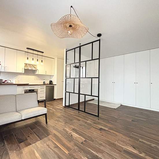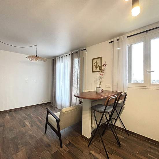 Drancy centre / Rue Jean Jacques Rousseau. Dans un immeuble entretenu de 1970, un grand studio de 31.42m² situé au 7ème et dernier étage avec ascenseur. Il se compose d'une entrée avec rangements, une pièce de vie exposée Sud - Est donnant accès à un balcon de 5,91m², une cuisine ouverte aménagée et équipée et une salle d'eau avec WC. Une place de parking au sous-sol complète le tout. Bail meublé 1 an reconductible. Loyer 890 euros C.C. Disponible de suite.