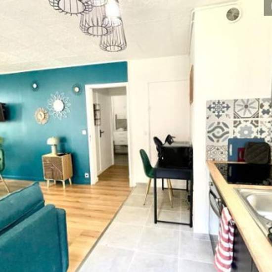Une grande pièce en mode Loft avec une cuisine ouverte localisée en face du chateau ( 1 mns de marche) 10 mns de l'INSEAD et 5 mns du centre ville. Située dans un parc. une entrée avec porte manteau et rangement à chaussures un grand dressing fermé une salle de bains avec baignoire des WC séparés