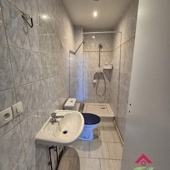 A Forbach, à proximité immédiate du centre-ville, cet appartement de 39 m² au RDC d'un immeuble collectif, vous propose : 1 cuisine équipée dînatoire de 12 m² avec plaque vitrocéramique (neuve), four et hotte, 1 séjour/chambre de 23 m², 1 salle d'eau avec wc. Le chauffage est collectif au gaz compris dans les provisions pour charges. Chaque appartement possède son compteur calorifique. Vous bénéficiez également d'1 cave commune en sous-sol. 1 meuble vasque va être installé dans la salle d'eau. Les provisions pour charges mensuelles de 120 € ...