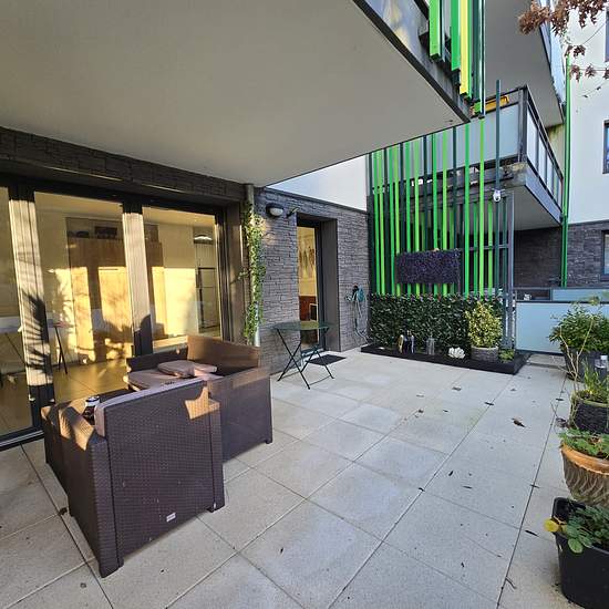 A proximité du centre ville, des écoles et des transports, charmant T1, entièrement meublé, il se compose d'une entrée, un séjour avec un coin cuisine bien équipé avec four, lave-vaiselle et lave-linge, une grande salle d'eau avec wc. Nombreux rangements. Vous profiterez d'une très belle terrasse de 24m2 avec vue sur le parc. 1 place de parking privative en sous-sol. Chauffage individuel gaz. Disponible de suite. Les informations sur les risques auxquels ce bien est exposé sont disponibles sur le site Géorisques :