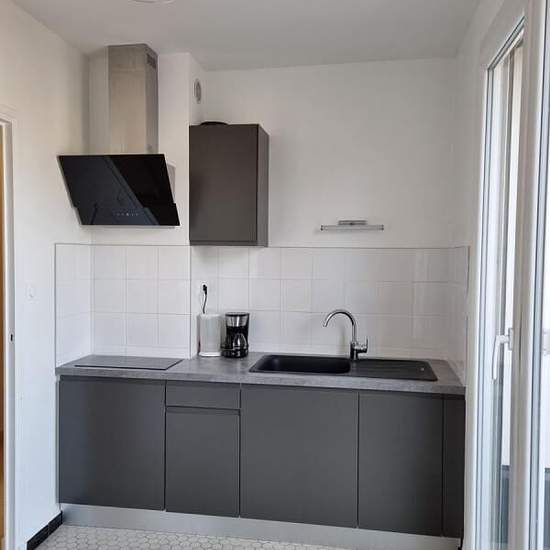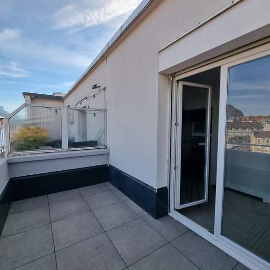 Appartement de 41 m² à louer sur Grenoble T1 de 41 m² meublé, situé quartier Championnet, rue très calme; entièrement rénové dernier étage. Disposant d'une grande pièce faisant office de salon avec méridienne et 2 fauteuils, de chambre avec lit rabattable 140X200 et de bureau, aménagé dans un coin fermé. Cuisine indépendante, intégrée donnant sur terrasse équipée de : frigo / congélateur; plaque à induction; hotte; micro-onde; four; plus petit électroménager et de nombreux rangements. Salle de bain avec baignoire et lave-linge, toilette indé...