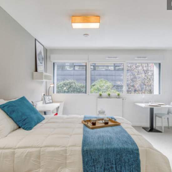 Conçue pour le confort des occupants dans un esprit campus, la résidence propose des logements qualitatifs, intégralement meublés et équipés. Lumineux, fonctionnels, agencés pour maximiser l'espace, les locataires bénéficient d'un cadre idéal pour étudier, se reposer et s'amuser dans une résidence étudiante conviviale et innovante. Le T1 comporte un lit double, une étagère chevet ou un chevet mobile, un bureau avec tiroirs et fauteuil, un espace repas et une penderie. L'appartement est équipé d'une applique murale en tête de lit, d'une lampe...
