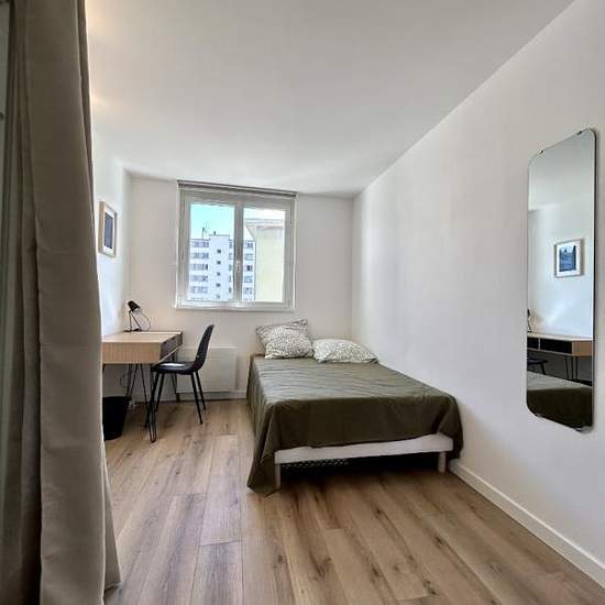 Chambre n3 disponible Découvrez Split, un appartement chaleureux et fraîchement rénové au style contemporain de 64 m² situé au 5ème étage d'une résidence sécurisée à Grenoble. - Une pièce de vie commune douillette - Une cuisine équipée (réfrigérateur-congélateur, micro-ondes, four, lave-vaisselle, lave-linge) - 3 chambres équipées (lit double, bureau avec fauteuil, placard de rangement) - 1 salle d'eau - Toilettes séparés - Un grand balcon avec un salon de jardin Son emplacement est idéal pour les étudiants de l'université Grenoble Alpes, ou...
