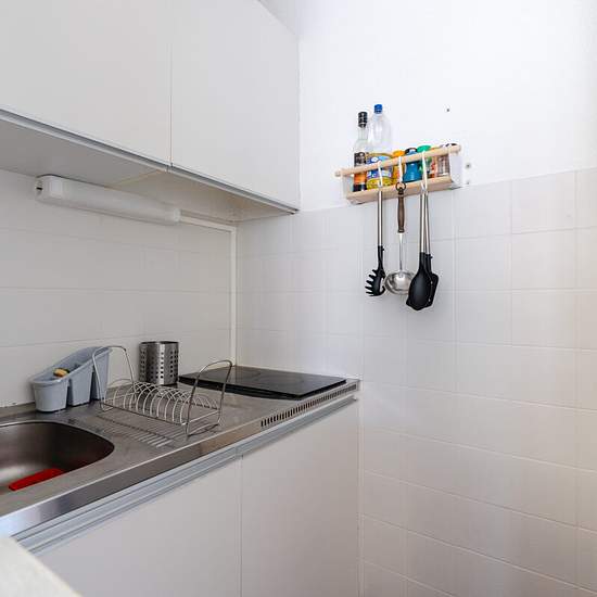 Fütterer Property vous présente à Gruissan : Studio meublé en location à l'année à Gruissan. Ce studio cabine, se compose comme suit : le salon-cuisine avec TV dispose d'un canapé-lit clic-clac (140x190) et fauteuil. La kitchenette comprend un réfrigérateur avec congélateur, une cafetière Senseo et une cafetière classique, un grille-pain, une bouilloire, un micro-ondes et une plaque de cuisson vitrocéramique (2 feux). La chambre cabine est optimisée avec un lit superposé 90x190 et une commode pour le rangement. La salle d'eau fonctionnelle i...