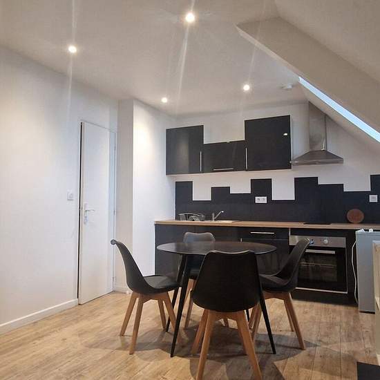 Studio au Coeur de Guingamp meublé. Un studio MEUBLE , de 20,67 m² en plein cœur du centre ville de GUINGAMP, comprenant une cuisine aménagée/équipée: four, plaque deux feux induction, hotte, évier, réfrigérateur, sur pièce de vie. Une salle d'eau avec WC et accès Machine à Laver. Le studio est sur un 2ème et dernier étage d'une monopropriété comprenant une terrasse et un jardin commun ainsi qu'un garage à vélo. Interphone. Eau, teom et entretien des communs dans les charges. Electricité à la charge du locataire. Visites sur dossiers compl...