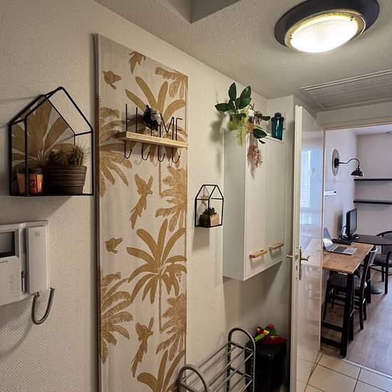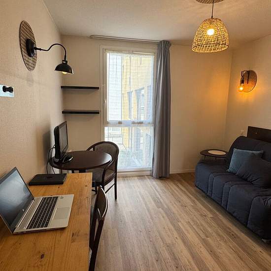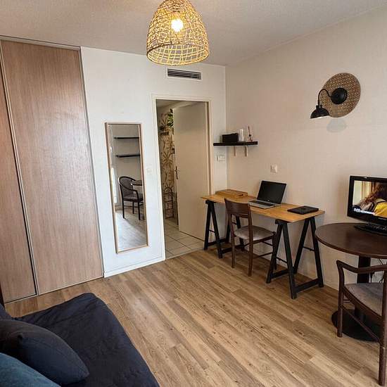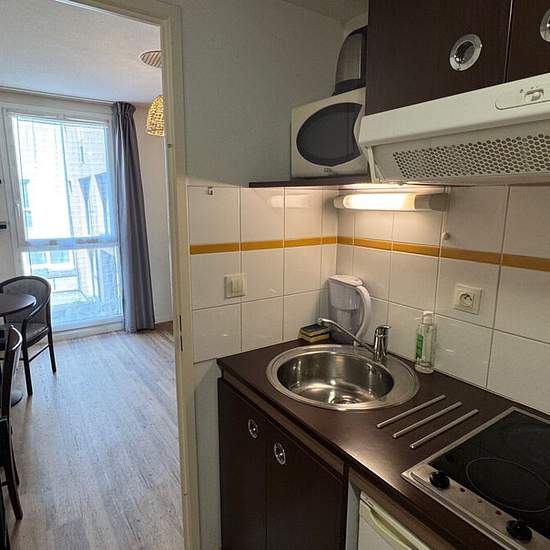 HAUT D'IDRON à l'Est de PAU (10mn du centre-ville et de la Fac), , en face de tous les commerces et commodités à pieds, Dans une résidence récente sécurisée, En étage avec ascenseur, au Calme, Studio Meublé refait à neuf, 19.72 m² habitables composé d'une kitchenette entièrement équipée (hotte aspirante, four mo, réfrigérateur, plaques de cuisson, lave-vaisselle, bouilloire...), donnant sur une pièce de vie aménagée d'un canapé convertible, bureau, TV , table + chaises, placard... d'une salle d'eau avec wc. Un parking privé et sécurisé. Le p...