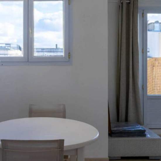 Studio d'exception avec balcon et terrasse – Dernier étage – Lumineux & au calme Situé au 8ᵉ et dernier étage avec ascenseur, ce superbe studio traversant de 25 m² séduit dès l'entrée par sa luminosité remarquable, son calme absolu et ses espaces extérieurs rares en ville. Un intérieur optimisé et confortable Entièrement rénové fin 2021, l'appartement offre un aménagement intelligent et moderne, pensé pour un confort de vie optimal : une pièce de vie lumineuse parfaitement agencée, une armoire-lit escamotable avec banquette intégrée, permett...
