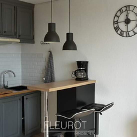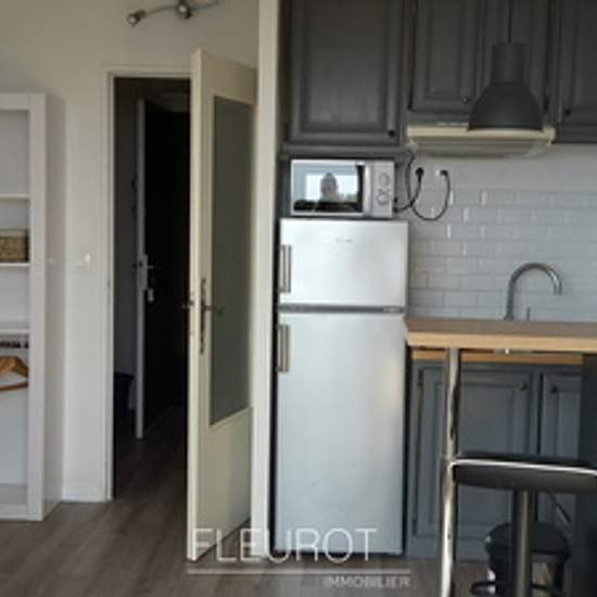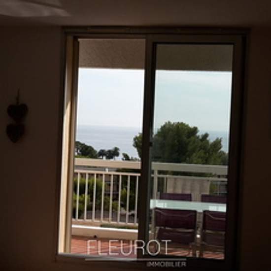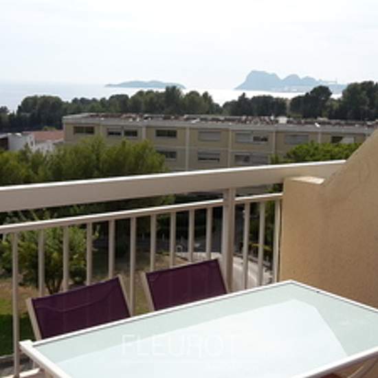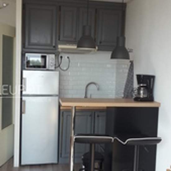 Studio meublé avec balcon bénéficiant d'une jolie vue mer. Entrée avec placard, cuisine équipée ouverte sur le séjour, salle d'eau et balcon.