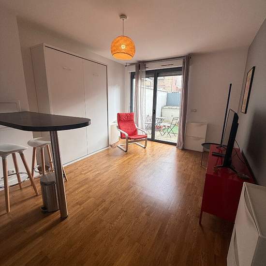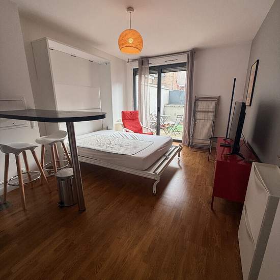 Grand Studio meublé d'une surface de 24,62 m2 au RDC avec jardin d'environ 12m2 composé d'une entrée, salle d'eau avec pièce principal, coin cuisine équipée et aménagée donnant sur jardin privatif. Emplacement parking au s/sol. Emplacement idéal. Situé à 2min des commerces et 5 min de la Gare des Vallées. A voir absolument Contacter le