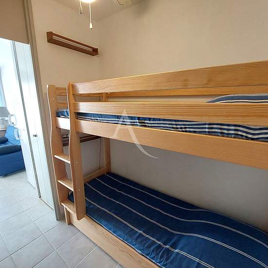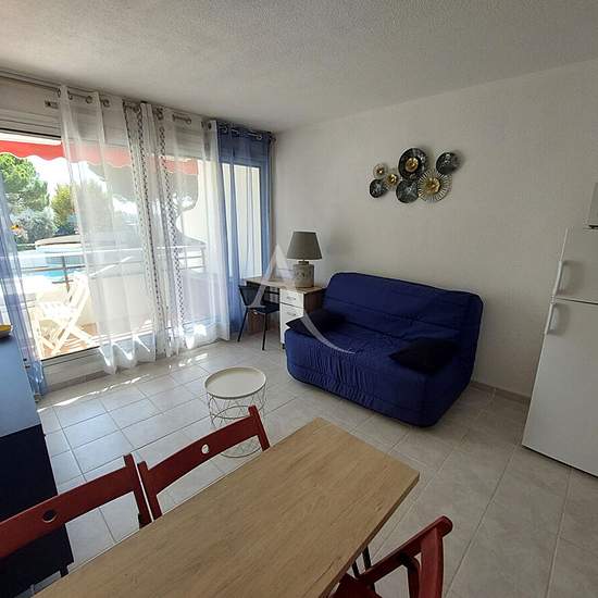 A louer de janvier 2026 à fin mai 2026 , Dans résidence avec piscine et ascenseur, Magnifique Studio cabine meublé 21.66 m2 totalement rénové avec loggia exposée Sud, vue sur la piscine et les jardins. Il se compose d'une entrée avec coin cabine, d'une salle d'eau avec wc et lave linge, d'un séjour avec kitchenette aménagée et équipée. Parking.