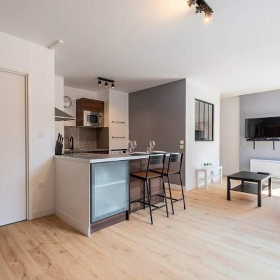 You will appreciate this flat for its charm, its living room, a fully equipped kitchen with dishwasher, a spacious bedroom with double bed and a large bathroom with washing machine. The flat is located on the ground floor of a recent secure residence. It has been carefully prepared to welcome you! Professional cleaning service + laundry service for linen. The kitchen is equipped with all utensils and dishes for lunch and dinner. The bed and cleaning are done before your arrival, all linen is provided: bed linen, bath towels, bath mats and te...