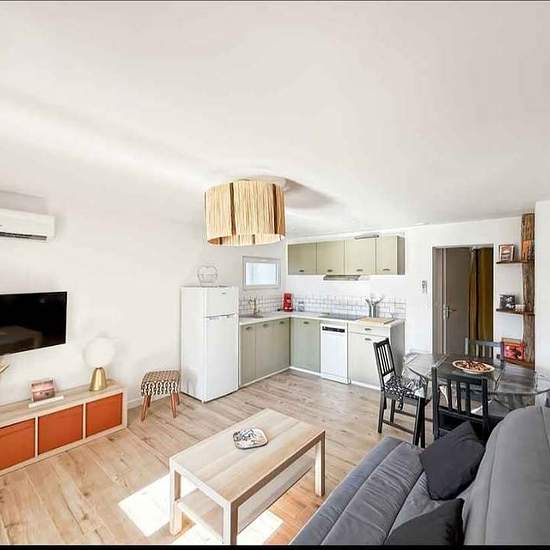 DISPONIBLE DE SUITE jusqu'à fin Avril 2026. Bail de courte durée meublé Loyer 750€/mois HC + 50€/mois de charges (eau/électricité/box internet/frais de copropriété) donc 800 euros TOUT COMPRIS! Dépôt de garantie : 800€ A proximité du centre ville et du Port de la Teste (environ 5 min), de la gare et de la plage de La Hume, T2 meublé d'une surface de 40m² au RDC avec terrasse couverte de 18m2 et jardin de 50m2 d'une petite résidence au calme vous offrant tout le confort : Une entrée, salon/séjour avec canapé lit 2 places, un coin repas 4 pers...