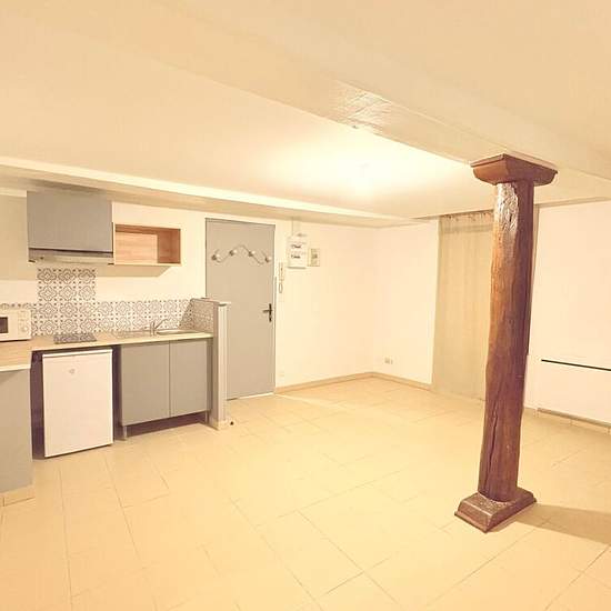studio rénové - RDC - 26m2 - ville haute. Studio de 26m2, rénové avec kitchenette aménagée et équipée (plaque de cuisson, hotte, réfrigérateur, micro ondes) A 2 pas de la rue Saint Jean, de l'hôpital et de l'IUT Loyer : 320€ (eau comprise) Disponible Delphine