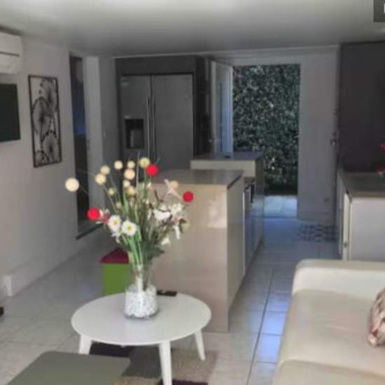Appartement T2 composé d'une chambre, d'un séjour cuisine de 20m2, d'un salon, d'une salle de bain avec une baignoire et sèche serviettes electrique. Vous pourrez également profiter de nombreux jeux de société, d une connexion wifi et de chaînes par câble. Fer et table à repasser, aspirateur. Chaise haute, lit parapluie bébé, table de massage professionnelle sur demande... ÉQUIPEMENTS SÉJOUR CUISINE table et 4 chaises, four micro onde, four à chaleur brassée, plaque à induction et au gaz de ville, hotte aspirante, réfrigérateur congélateur a...