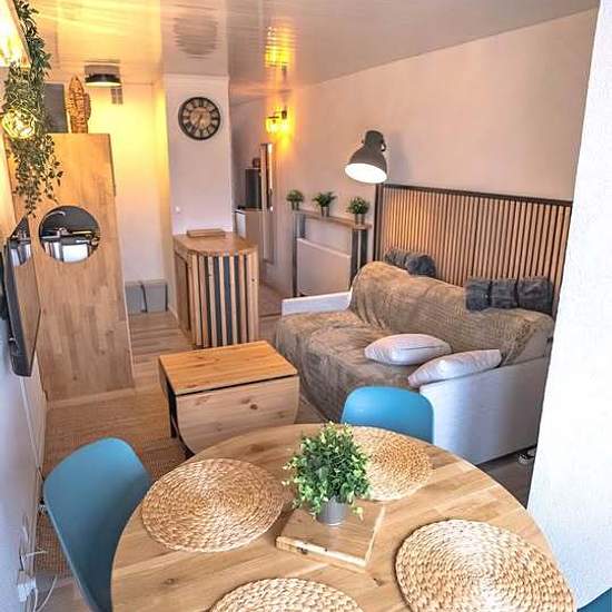 T1 Cabine 23m2 550€ CC louable au mois, Bord Étang Barcarès. Disponible dès Janvier 2026 à Juin. Loue appartement meublé de 23m² location au mois entièrement rénové situé au 3ème étage d'une résidence sécurisée avec badge magnétique pour le portail et caméras de surveillance. La résidence est très calme et paisible, située au bord de l'étang. Idéal pour télétravail ou étudiant. Wifi haut débit avec la fibre. Tout équipé et refait à neuf. Libre de Septembre à Mai, louable au mois, 1 mois minimum. 550€ TTC Charges Comprises (eau, internet, ord...