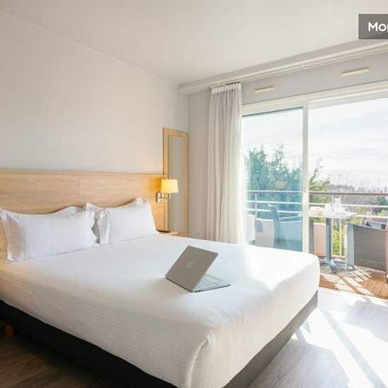 The double studio of 20m, air-conditioned, for 2 persons, consists of a living space with a double bed, a bathroom and an LCD TV. The rooms have a balcony. The kitchen has a microwave, refrigerator, ceramic hob and extractor fan. Dishes are also provided. Sanitary facilities: Bathtub, WC. Bedding: Double bed. Free Wi-Fi access in all apartments. The residence also offers additional services payable on site: - Breakfast (12/adult/day and 6/child) - Pets: 5/day, 30/week and 60/month - Underground parking: 7/day, 30/week and 60/month - Outdoor ...