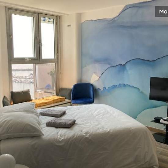Furnished studio apartment with SEA VIEW on the 5th floor with lift of a luxury residence with caretakers ("Résidence de France"). The flat comprises an entrance hall with cupboard, a main room, a fully-equipped kitchen (dishwasher, microwave, fridge, etc.) and a shower room with WC. Equipped with a real bed, a dining area and a sitting area. South-facing, opposite the marina, 5 minutes from the beach, close to shops and transport links. Easy street parking (free in front of the residence). Secure residence with 24/7 security. Services incl...