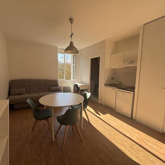 Studio au rez-de-chaussée comprenant un coin cuisine avec éléments hauts, une hotte, un réfrigérateur et une plaque vitro. Un séjour avec placard et coin penderie, une table, quatres chaises, une bibliothèque ainsi qu'un bureau et un clic-clac. Une salle d'eau avec meuble-vasque, sèche serviette, placard, et wc. Chauffage individuel électrique. Prix moyens des énergies indexés sur les années 2021,2022, 2023 (abonnement compris) Honoraires état des lieux : 0.00€ Les informations sur les risques auxquels ce bien est exposé sont disponibles sur...