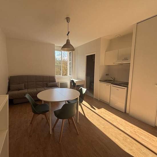 Studio au rez-de-chaussée comprenant un coin cuisine avec éléments hauts, une hotte, un réfrigérateur et une plaque vitro. Un séjour avec placard et coin penderie, une table, quatres chaises, une bibliothèque ainsi qu'un bureau et un clic-clac. Une salle d'eau avec meuble-vasque, sèche serviette, placard, et wc. Chauffage individuel électrique. Prix moyens des énergies indexés sur les années 2021, 2022, 2023 (abonnement compris) Honoraires état des lieux: 0.00€ Les informations sur les risques auxquels ce bien est exposé sont disponibles sur...
