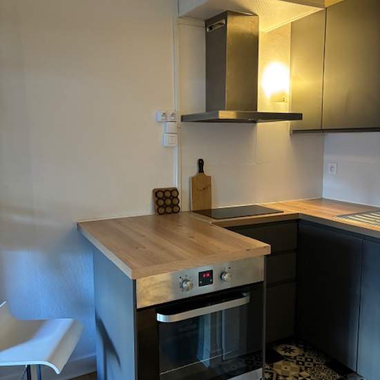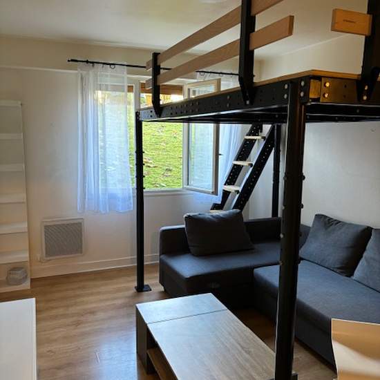 un STUDIO meublé comprenant, une entrée avec placard, une kitchenette, une salle d'eau avec WC et une cave. Modalité d'au chaude et de chauffage : individuelle électrique par ballon d'eau chaude électrique