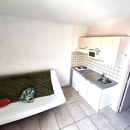 Le Pontet plein centre, studio meublé au 4ème étage avec ascenseur, hall d'entrée avec rangement, pièce principale avec coin kitchenette équipée, salle d'eau, toilettes, climatisation réversible. Libre de suite. Loyer : 370 charges : 30 Dépôt de garantie : 600 Honoraires locataire : forfait studio 190 selon barème.